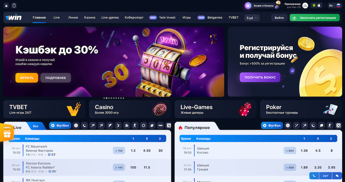 1Вин – наиболее популярная букмекерская контора, позволяющая делать ставки на спорт и играть в игровые автоматы. Это легальное игорное заведение, которое имеет нужные лицензии и сертификаты безопасности. Поэтому у игроков не возникает проблем с выводом выигранных средств. Чтобы начать делать ставки или крутить слоты, нужно войти на сайт и регистрироваться. Игрок сразу же получает выгодный бонус на первые депозиты.